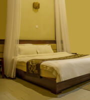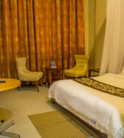 Our rooms have en-suite bathrooms, Curved Shower Curtain Rods, Executive writing desk, comfortable Chair as well as Towels and are fully decorated, spacious with high speed wireless internet and Tv with DSTV channels, Mosquito Net